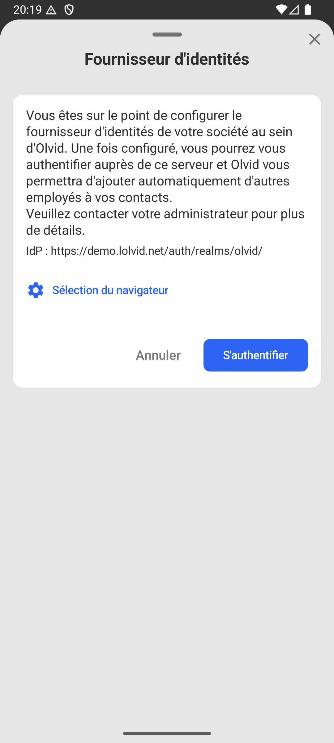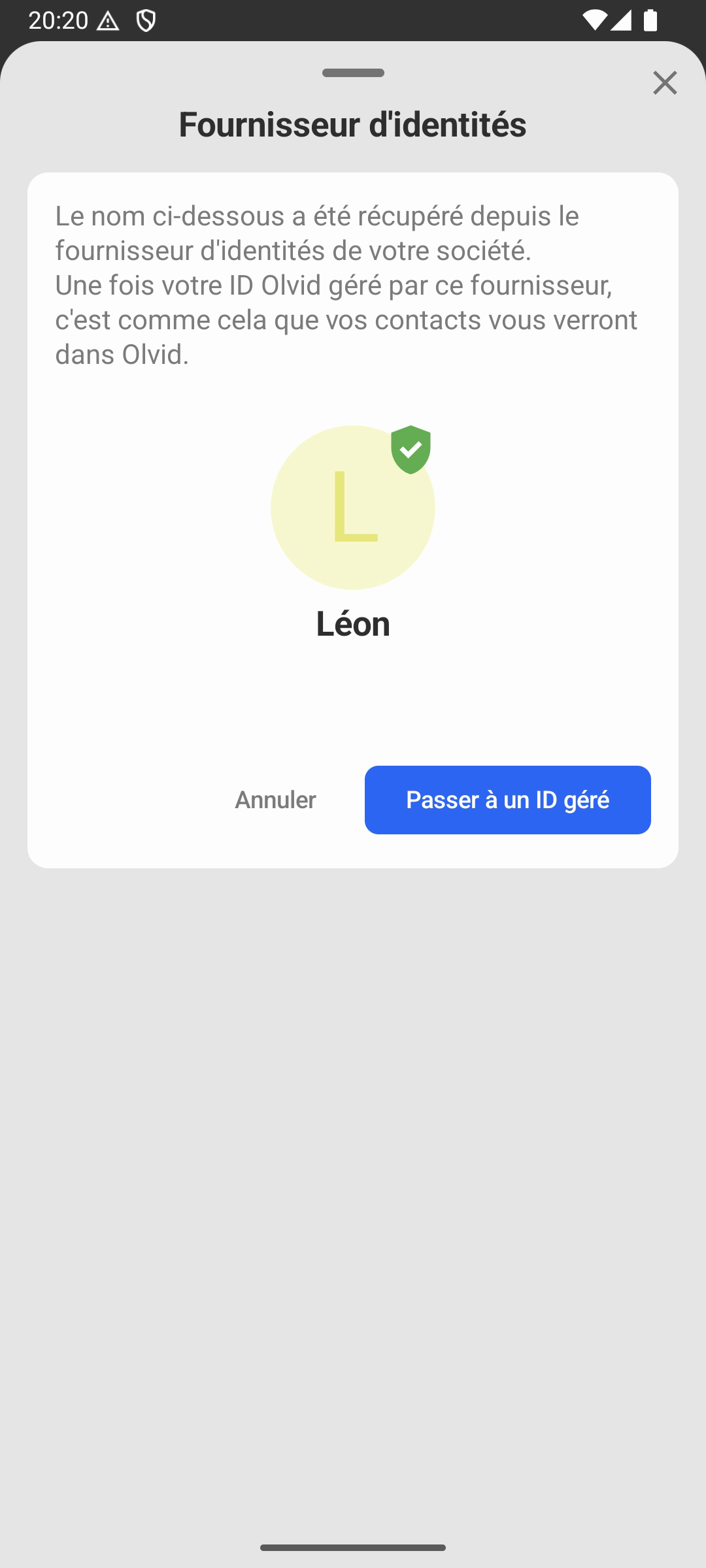 Vous pouvez passer dâun profil Olvid gĂ©rĂ© par le fournisseur dâidentitĂ© de votre organisation Ă un profil Olvid « standard ».