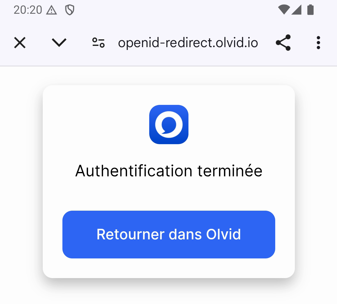 Lâauthentification est terminĂ©e. Appuyez sur Retourner dans Olvid.