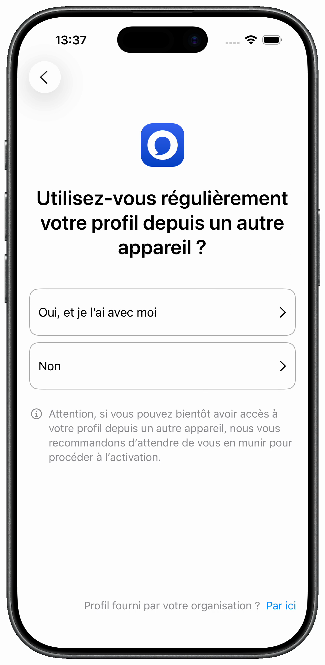 Sur lâappareil mobile, touchez Jâai dĂ©jĂ un profil Olvid.