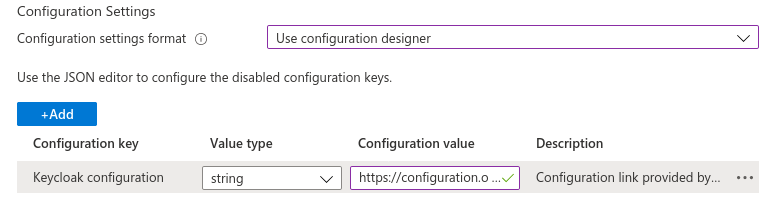 keycloak_configuration_uriin configuration key field. - Set String as value type.