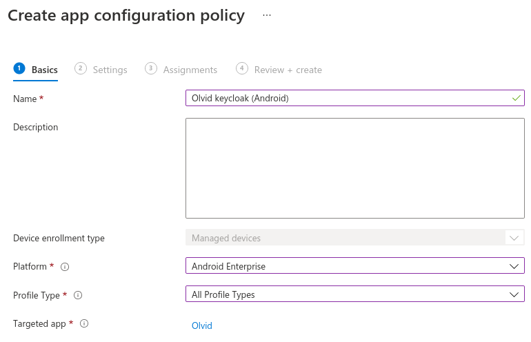 - On the Assignments tab, you can choose to assign this configuration to All devices, All users or specific groups. Then click Next.